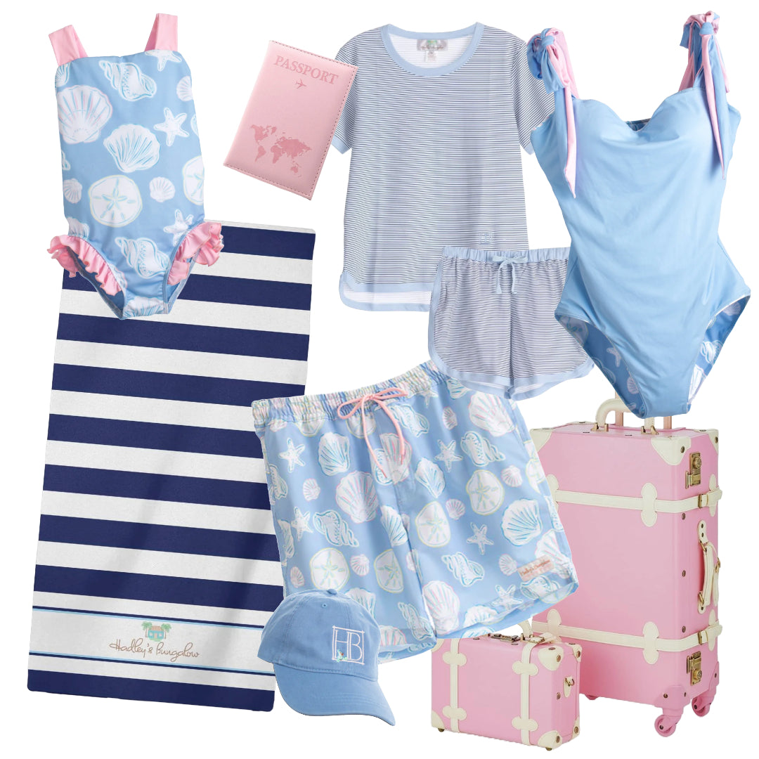 Are you heading out on a vacation soon? Have a stress-free trip, and make packing easy with matching swimwear from the Tortola Treasure Collection for the whole family. Don't forget a little something special for her too with our super-soft Navy Stripe Short Set Pajamas. Of course, you'll need to pack a stylish hat and matching beach towel.